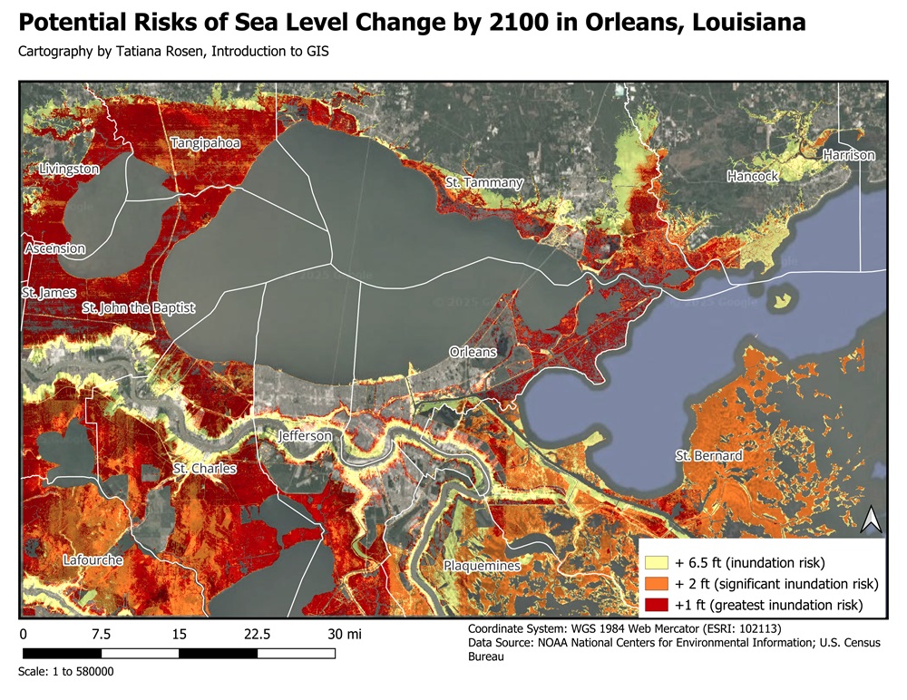 Potential Risk of Sea Level Change by 2100 in Orleans and Surrounding Counties, Louisiana